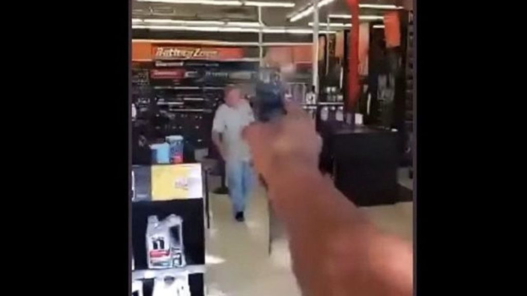 grosseira, enquanto abriu a porta de uma loja e disparou duas vezes contra a primeira pessoa que apareceu.