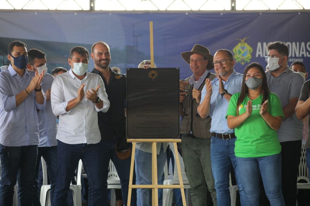 Barcelos (AM) – Um dos principais destinos do ecoturismo no Amazonas, a cidade de Barcelos (a 399 quilômetros de Manaus) ganhou novo aeroporto, nesta quarta-feira (23), com a inauguração pelo governador Wilson Lima da obra de reforma e ampliação de seu terminal de passageiros. Como apurado pelo Em Tempo, o deputado federal Eduardo Bolsonaro (União Brasil) esteve presente na cerimônia com o Chefe do Executivo Estadual.