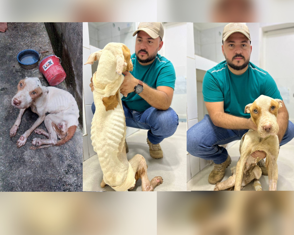 “O animal estava bem magro e com um ferimento profundo na perna esquerda. Ao chegarmos lá, verificamos que a dona do animal estava aplicando óleo queimado sobre a ferida. Ele chegou a se alimentar desse produto químico, fato que prejudicou ainda mais o seu estado de saúde”,
