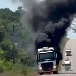 Incêndio ocorreu próximo a Presidente Figueiredo; motorista não ficou ferido e fumaça chamou atenção de quem passava pela rodovia.