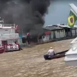 VÍDEO: posto de combustível flutuante pega fogo no interior do AM