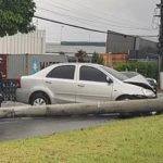 Carro derruba poste e interdita trecho da avenida Torquato Tapajós, em Manaus
