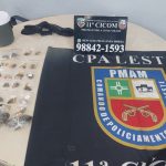 Durante a ocorrência, duas porções médias de maconha, três trouxinhas de cocaína, nove papelotes de oxi e 23 papelotes de maconha foram apreendidos