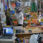 Dois criminosos armados ameaçam funcionários e clientes durante ação registrada por câmeras de segurança.