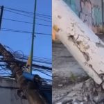 Picape derruba poste e causa congestionamento na avenida Efigênio Salles; VÍDEO