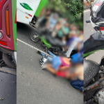 Moto fica presa em roda de caçamba durante acidente no Santa Etelvina, em Manaus