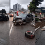 VÍDEO: Carro capota após pneu de picape se soltar e afeta trânsito em Manaus