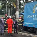 VÍDEO: Motorista fica preso às ferragens após caminhão colidir com postes em Manaus