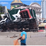 Vídeo: Guindaste tomba durante montagem de árvore de Natal no Centro de Manaus