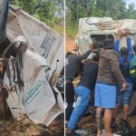 Veículo perdeu o controle em uma curva fechada, capotou no acostamento e vazou grande quantidade de diesel.