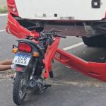 Vítima estavam em uma motocicleta pela faixa da direita quando colidiram violentamente com a parte traseira de um micro-ônibus.