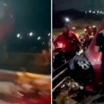 VÍDEOS: carro colide com cerca e fica pendurado em avenida de Manaus