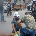 O homem foi socorrido por moradores do bairro. Imagens mostram como a perna dele ficou