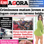 O jornal impresso Agora do dia 06/10/2023 destaca: Criminosos matam jovem e jogam corpo em terreno baldio.
