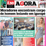 O jornal impresso Agora do dia 13/07/2023 destaca: Moradores encontram corpo de homem boiando em igarapé.