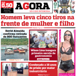 O jornal impresso Agora do dia 07/06/2023 destaca: Homem leva cinco tiros na frente de mulher e filho.