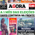 O jornal impresso Agora do dia 06/09/2024 destaca: A 1 mês das eleições David continua na frente.