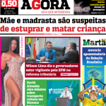 O jornal impresso Agora do dia 26/04/2024 destaca: Mãe e madrasta são suspeitas de estuprar e matar criança.