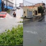 A água se acumula nas vias e motoristas se arriscam para trafegar nas áreas.