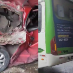 Ônibus perde controle durante assalto e bate em carro em Manaus; VÍDEO