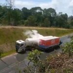 AM-010 fica interditada após colisão entre carreta de gás e caminhão; VÍDEO