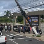Acidente em frente a escola deixa feridos e poste tomba sobre fiação na Ponta Negra