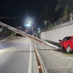 Carro derruba poste e bloqueia Avenida das Torres em Manaus