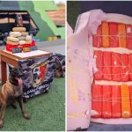 Cão policial encontra 14 kg de drogas escondidos em malas dentro de lancha no AM