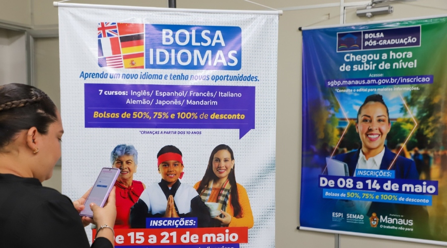 Prefeitura de Manaus oferece mais de 36 mil bolsas para cursos de idiomas e especialização.