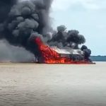 Em um vídeo, é possível observar o momento em que as balsas são incendiadas