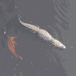 Imagens registradas por um biomédico mostram botos seguindo um jacaré-açu