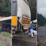 Colisão entre caminhões e ônibus escolar deixa mais de 10 feridos na BR-174, em Manaus; VÍDEO
