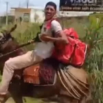 Entregador trabalha montado em burro após perder moto em blitz; VÍDEO