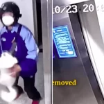 Vídeo: cachorro fica pendurado em elevador e é salvo por entregador