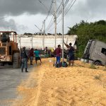 VÍDEO: caminhão tomba e espalha carga de milho no ‘Rapidão’, em Manaus