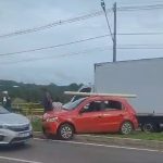 De acordo com a Polícia Militar, o motorista perdeu o controle do veículo ao tentar desviar de um carro de passeio e acabou tombando próximo ao acostamento