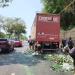 Pessoas que passavam no local levaram os produtos que estavam espalhados em via pública
