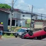Carro capota e causa transtornos no trânsito em avenida de Manaus