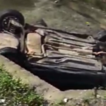 VÍDEO: Carro capota e cai dentro de igarapé após colisão em Manaus