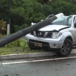 Duas pessoas ficam feridas após carro bater em poste durante chuva em Manaus