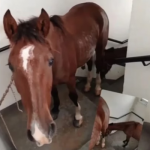 Cavalos estavam ilhados desde sábado (4), quando o prédio em Canoas foi invadido pela enchente que assola o Rio Grande do Sul