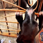 Animal ficou preso após se assustar com fogos de artifício em Manacapuru; resgate exigiu corte das grades.