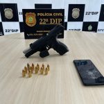Vítima teve veículo invadido, de onde foi roubada uma bolsa que estava com uma pistola calibre 9 milímetros e 60 munições