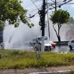 VÍDEO: Rompimento de adutora alaga avenida e deixa famílias sem água em Manaus