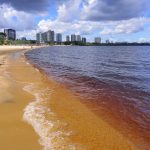 Praia da Ponta Negra tem faixa de areia reduzida com cheia do Rio Negro; veja orientações