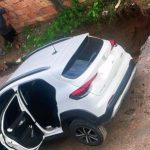 Carro cai em cratera no bairro Campos Sales, em Manaus