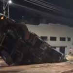 VÍDEO: Caminhão de lixo cai em cratera em avenida na Zona Oeste de Manaus