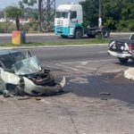 Carro atinge caçamba e quatro pessoas ficam feridas no Distrito Industrial