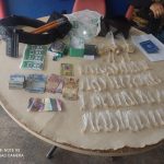 Foram apreendidos uma pistola 9mm, drogas e uma balança de precisão