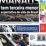 O jornal impresso Em Tempo do dia 30 e 31/03/2024 destaca: Manaus tem terceira menor expectativa de vida do Brasil.
